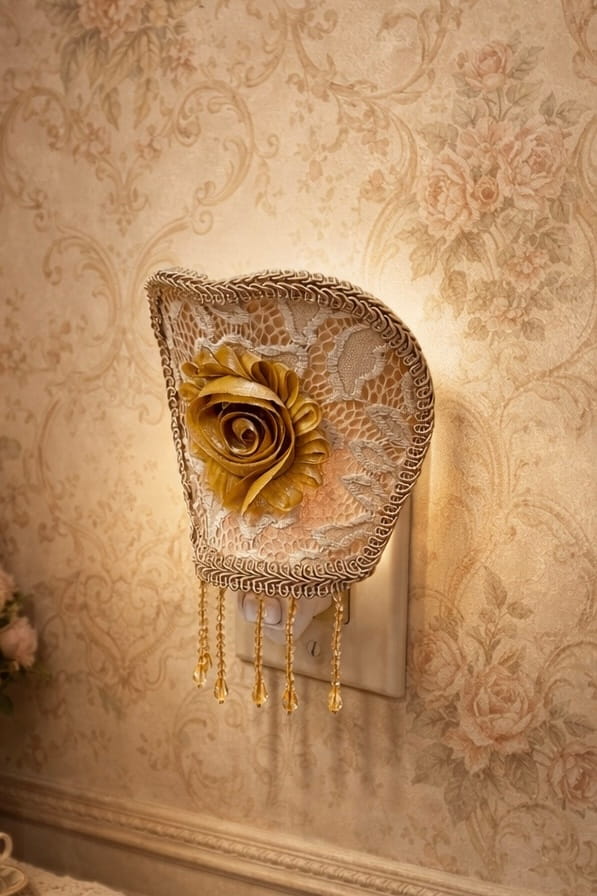 Inspired by Victorian aesthetics and handcrafted artistry, this plug-in night light is more than a simple light source. Each piece is carefully made by hand, celebrating softness, texture, and the quiet beauty of handmade design.