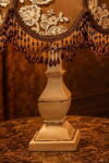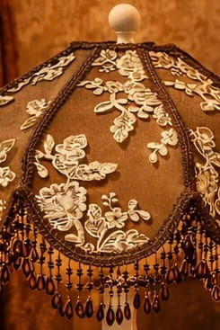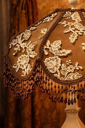Inspired by the charm of Victorian décor, this lampshade blends beautifully into both classic and contemporary spaces. The rich brown tones paired with delicate ivory embroidery create a refined focal point, while the beaded fringe adds texture and movement, enhancing its elegant presence.
