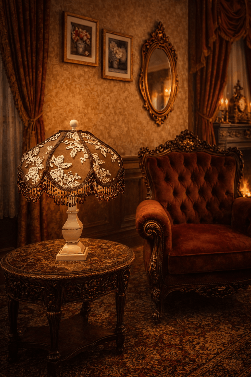 Bring warmth and timeless elegance into your space with this Victorian-style lampshade, designed to create a soft, inviting glow with a refined presence.