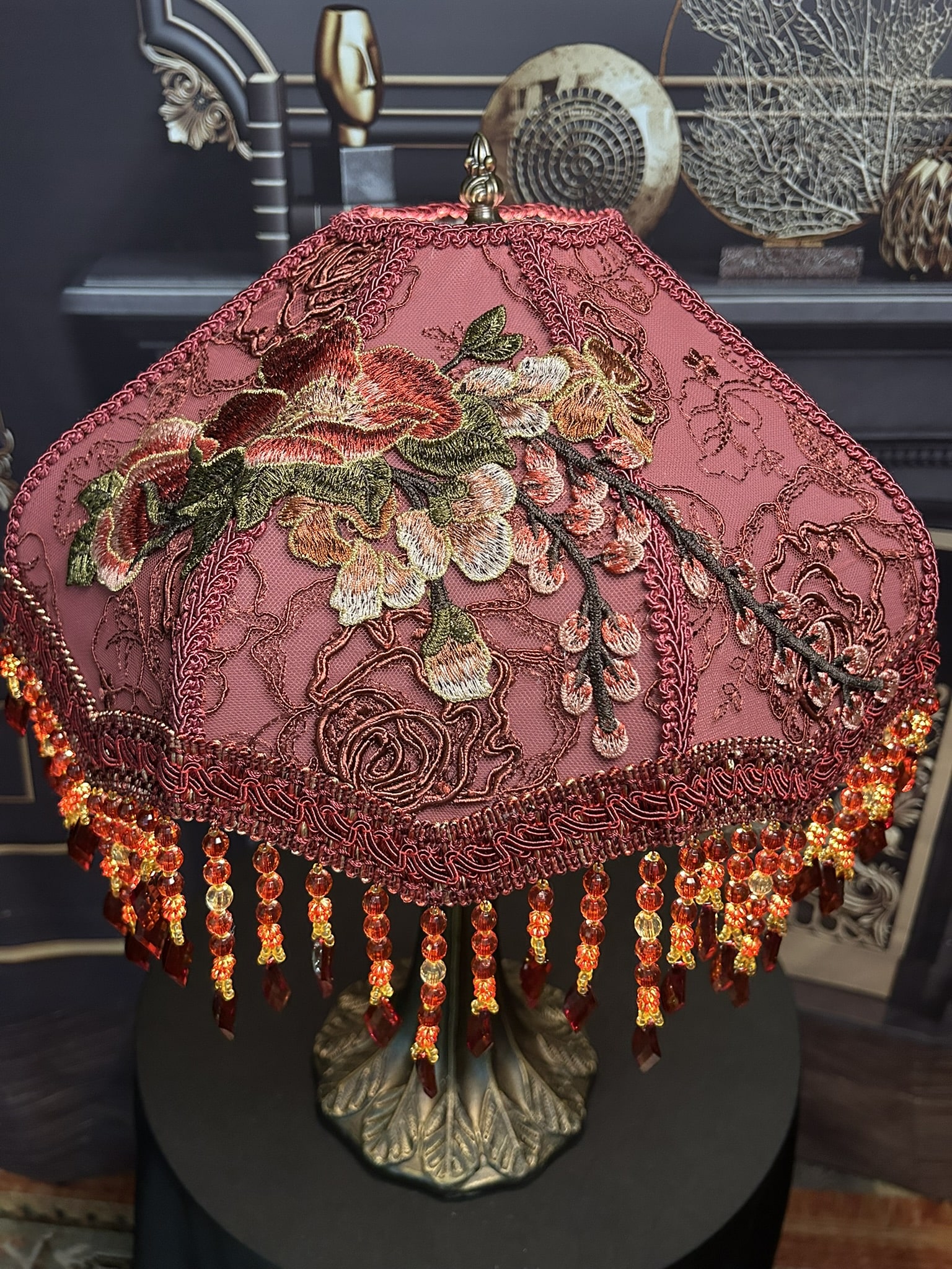 Let your space bloom in warmth and sophistication with the Burgundy Flowers, a Victorian-inspired lampshade that celebrates timeless beauty through deep tones and exquisite craftsmanship. Its rich burgundy fabric and floral embroidery evoke a sense of romance and classic elegance — a perfect accent for luxurious interiors.