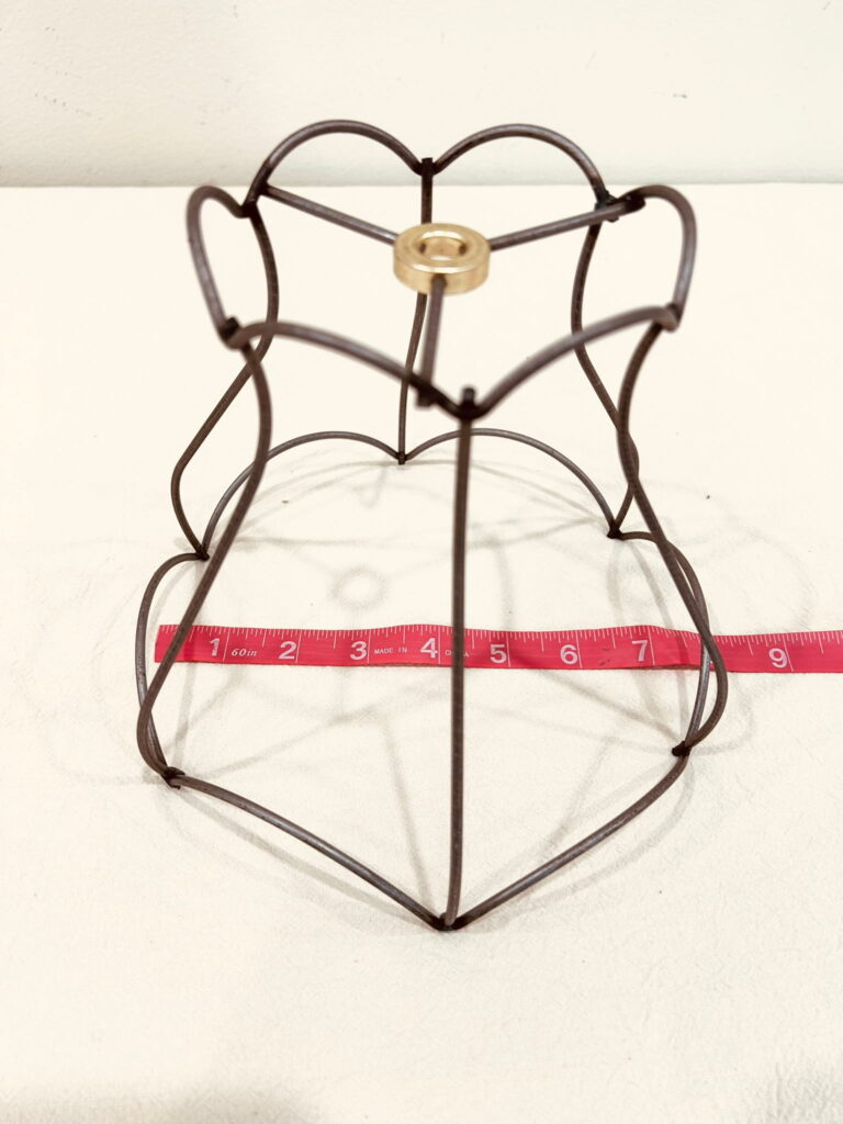 This Victorian lampshade wireframe features a spider fitter, compatible with standard table lamp bases designed for this type of attachment.