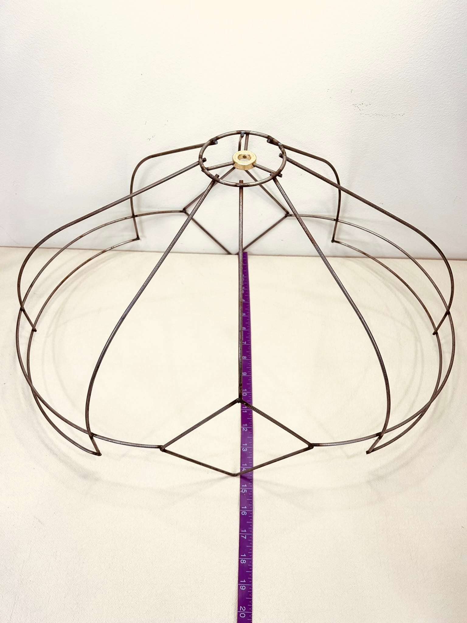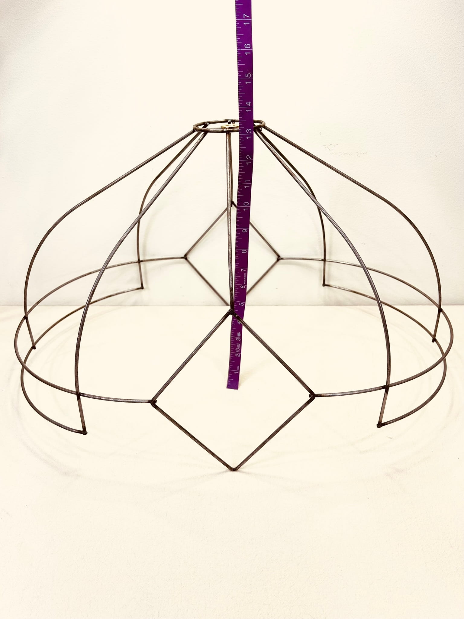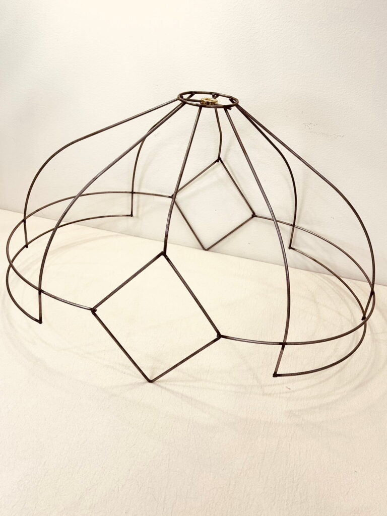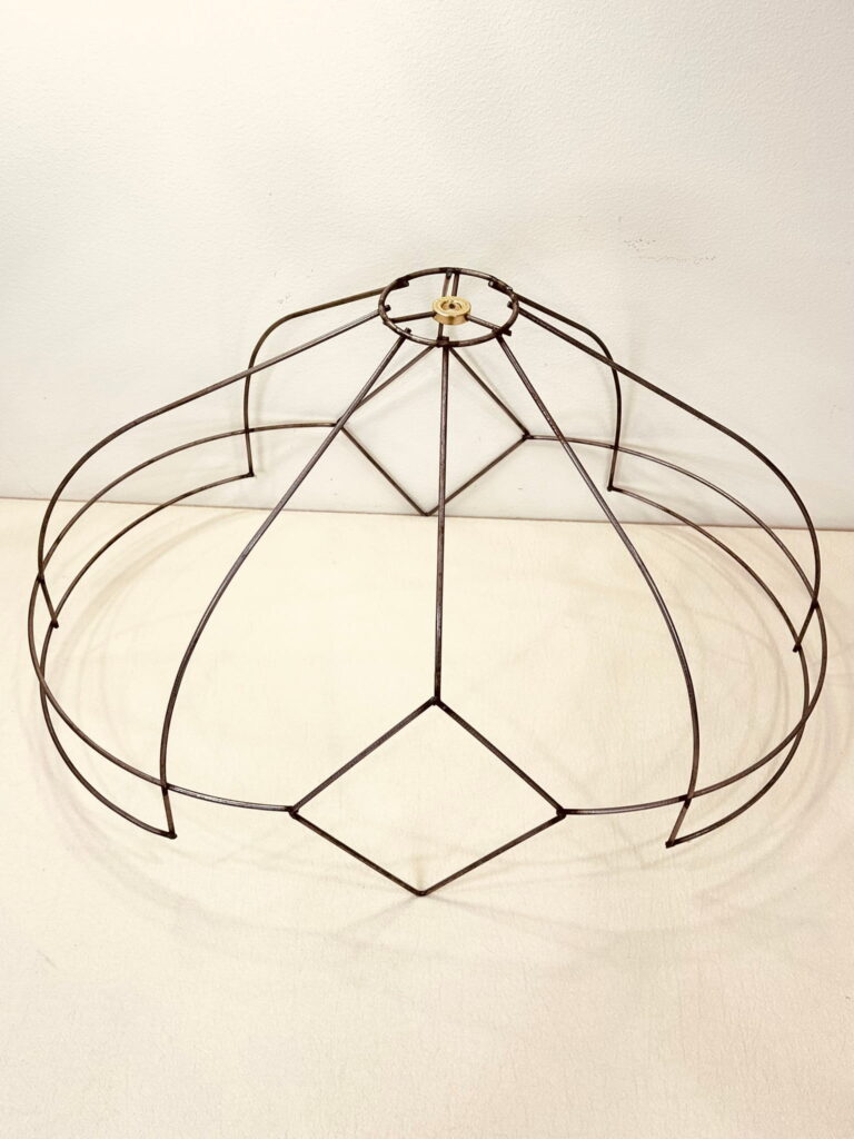 This wire frame is perfect for creating lampshades with a Victorian, romantic, or classic aesthetic, offering a refined structure that highlights both traditional and creative fabric combinations.