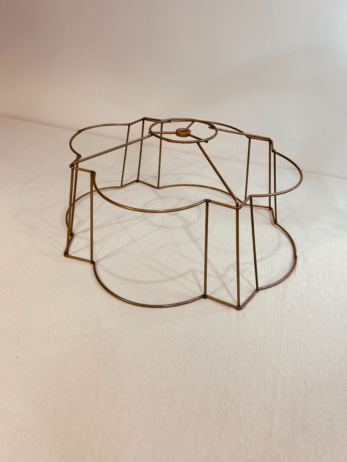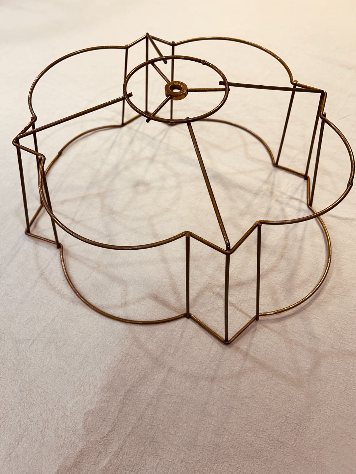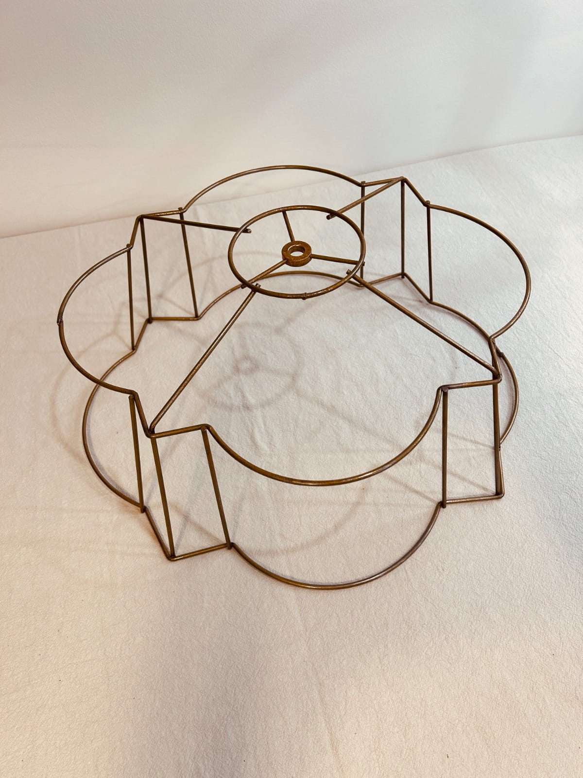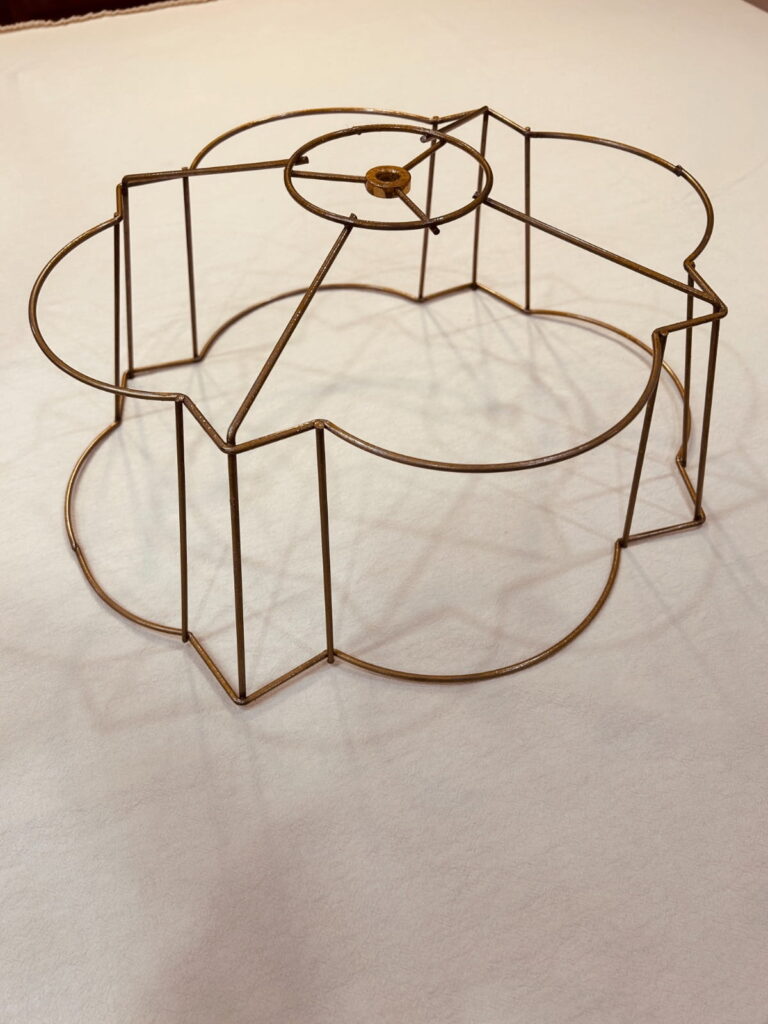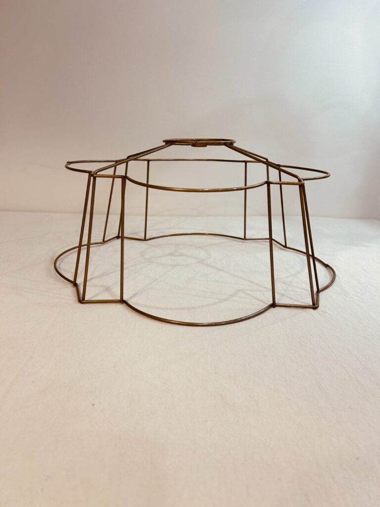 This wire frame is perfect for creating lampshades with a Victorian, romantic, or classic aesthetic, offering a refined structure that highlights both traditional and creative fabric combinations.