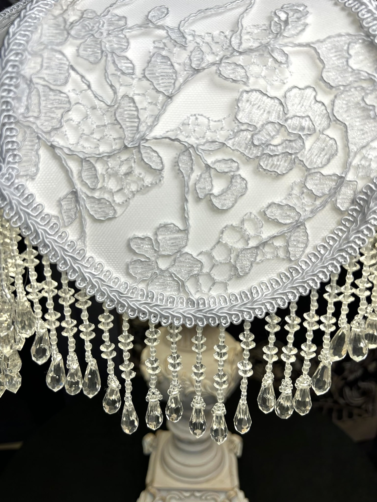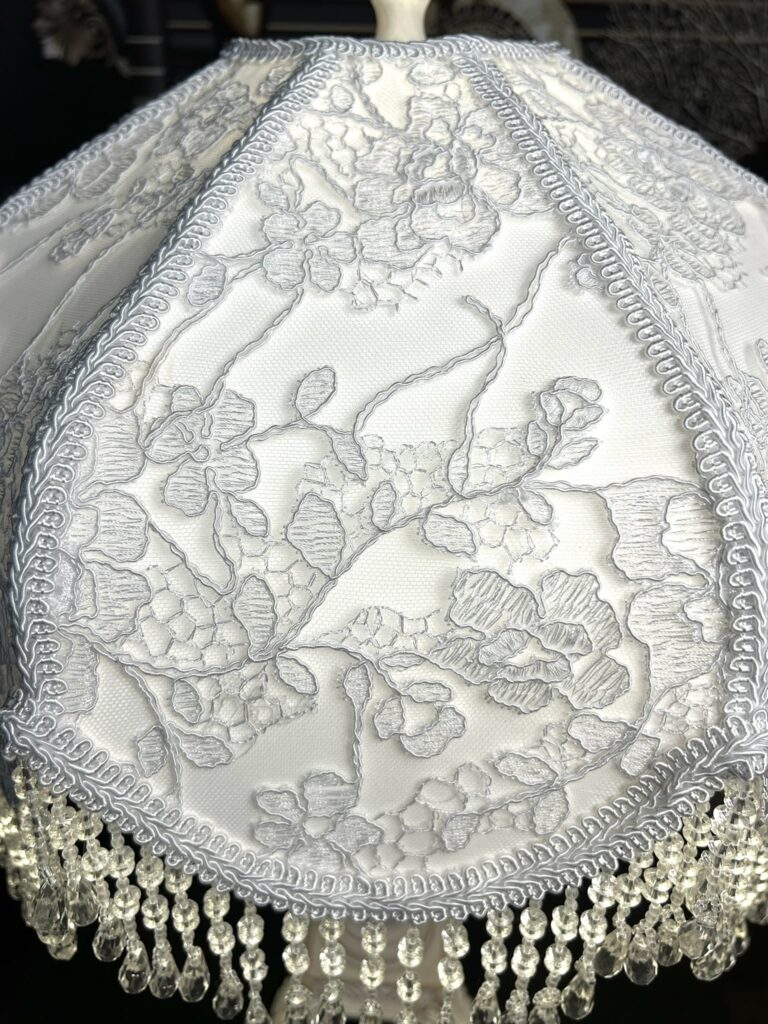 White Floral lampshade – Victorian Lampshade and Vintage Base